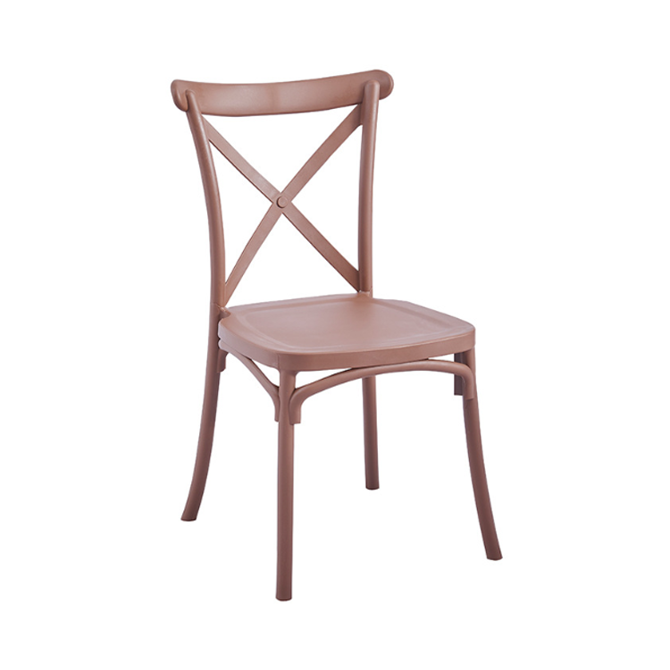 Cross back plastic chairs are a common type of furniture, usually made of plastic materials, which have the advantages of being lightweight, durable, and easy to clean. The cross back design not only increases the stability of the chair, but also provides comfortable support and good waist support.