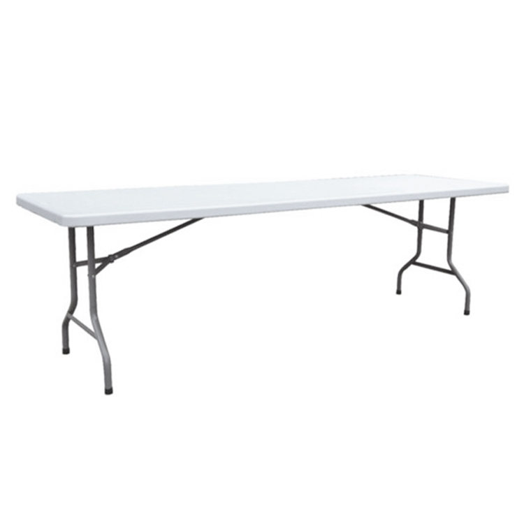 Plastic folding table is a lightweight, easy to carry and store table, commonly used for outdoor activities, picnics, camping, exhibitions, conferences, and other occasions. They are made of high-density polyethylene plastic, which is resistant to scratches, stains, and weather damage. They are waterproof, durable, and easy to clean. They can also be folded into small sizes for easy carrying and storage. Compared to traditional wooden tables, plastic folding tables are a cost-effective choice