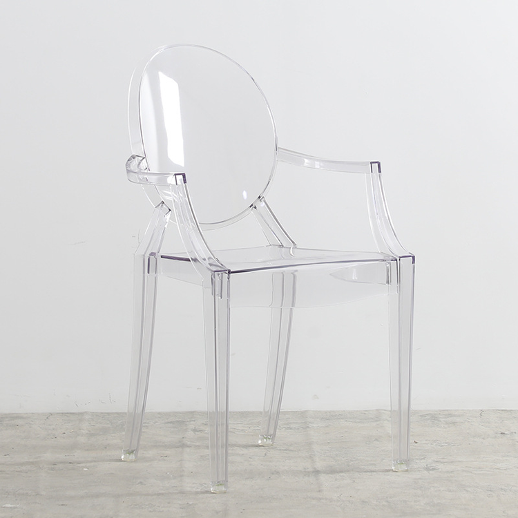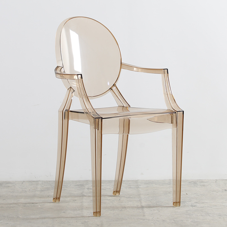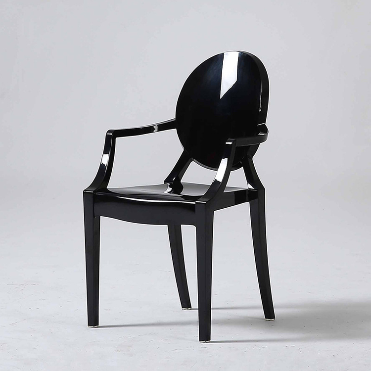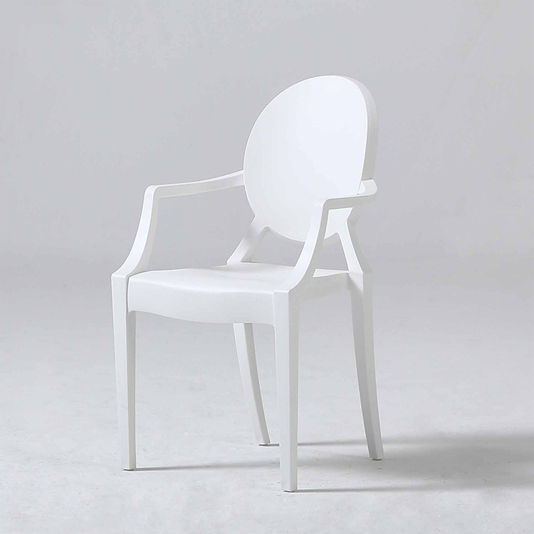 The chair is made of a resin material, which is a sturdy, durable, and easy to clean material. Therefore, resin armchairs have good durability and are easy to maintain. Resin materials can also achieve a variety of color and texture choices by dyeing or adding pigments, making the chair more diverse in appearance.