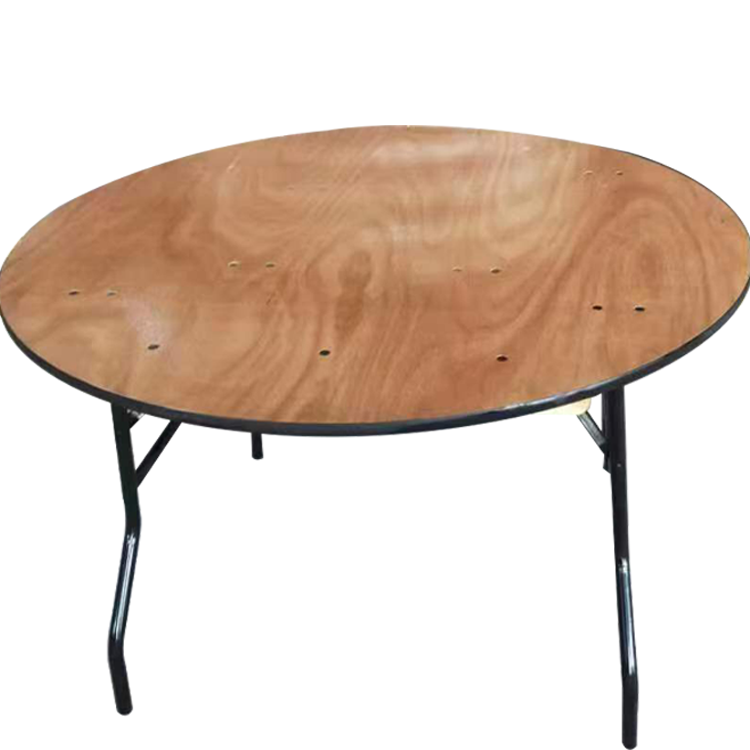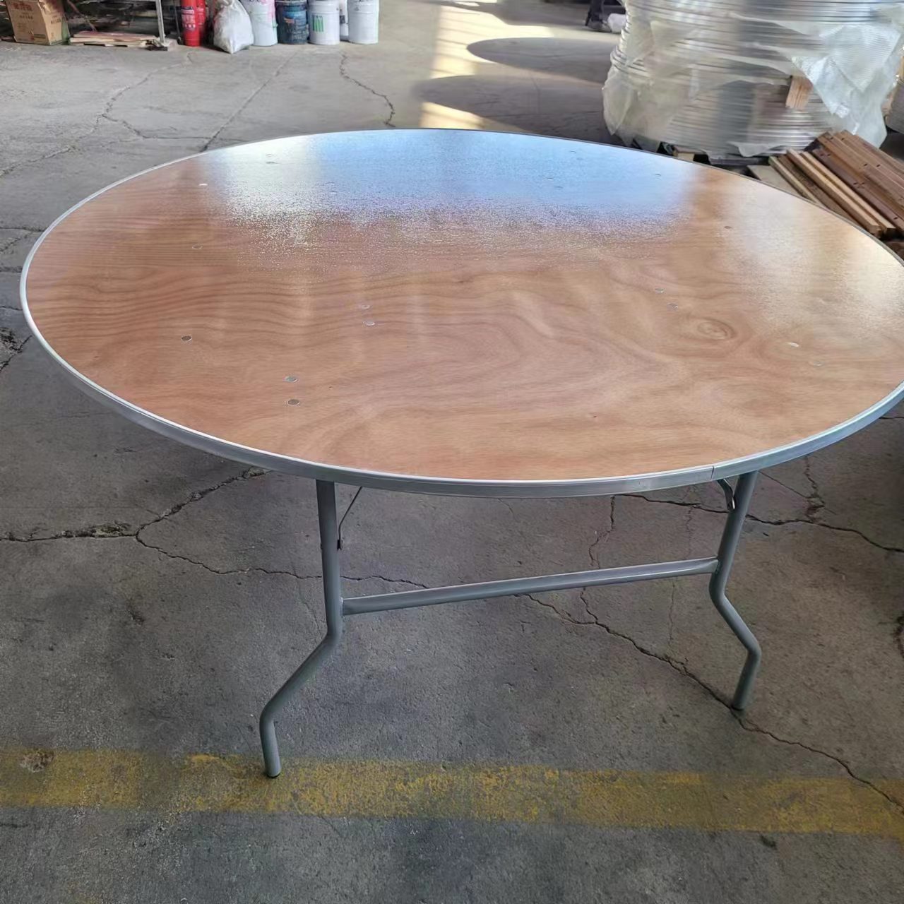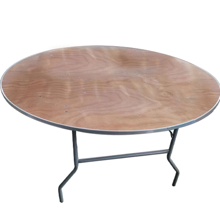 The round folding dining table features a sturdy and level surface that sits atop the table frame.