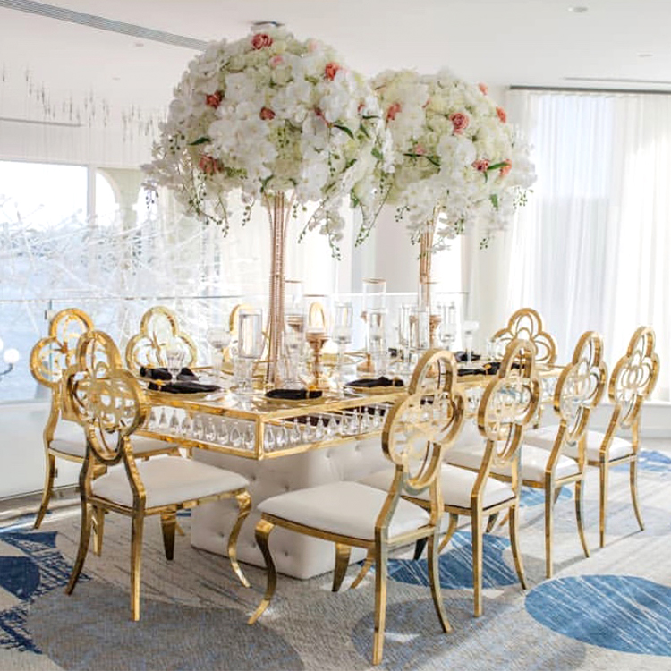 The size and style of the table can be customized according to personal preferences and venue requirements.