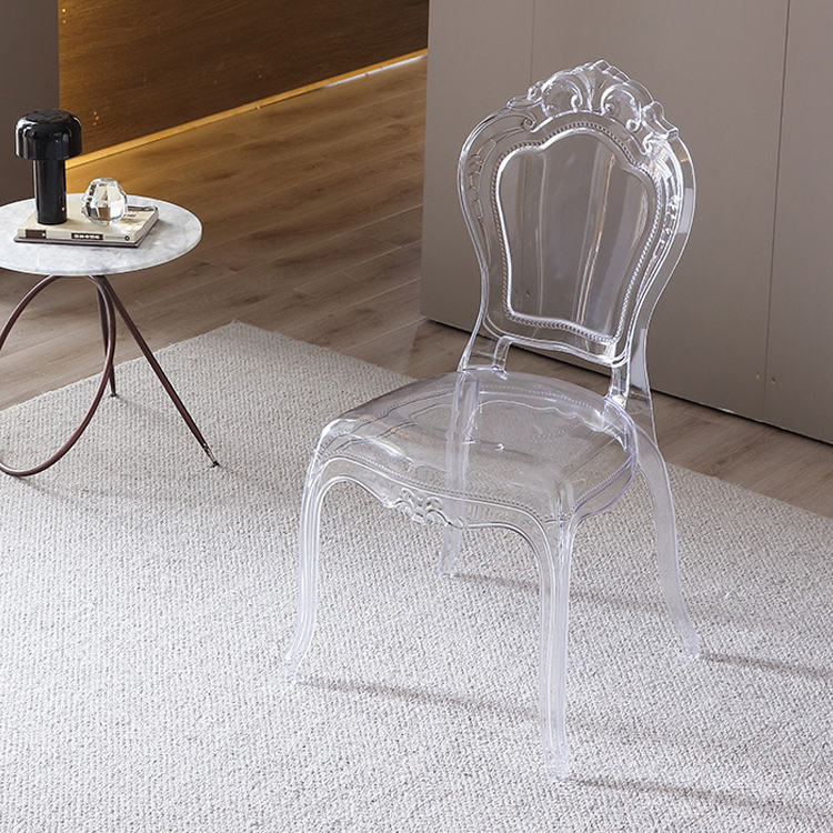 This clear plastic chair, made of high-quality clear plastic material, has an elegant and modern appearance, perfect for weddings, banquets, parties and other occasions.